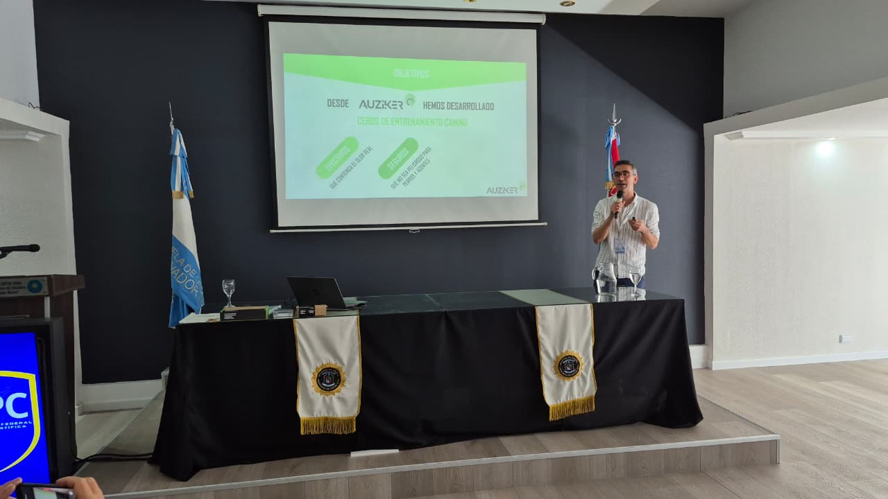 La exposición abordó la temática de “Cebos y su utilización en la detección y mejora del rendimiento de los perros policiales”, aportando valiosos conocimientos y experiencias que contribuyen al fortalecimiento del trabajo científico y técnico en el ámbito policial.